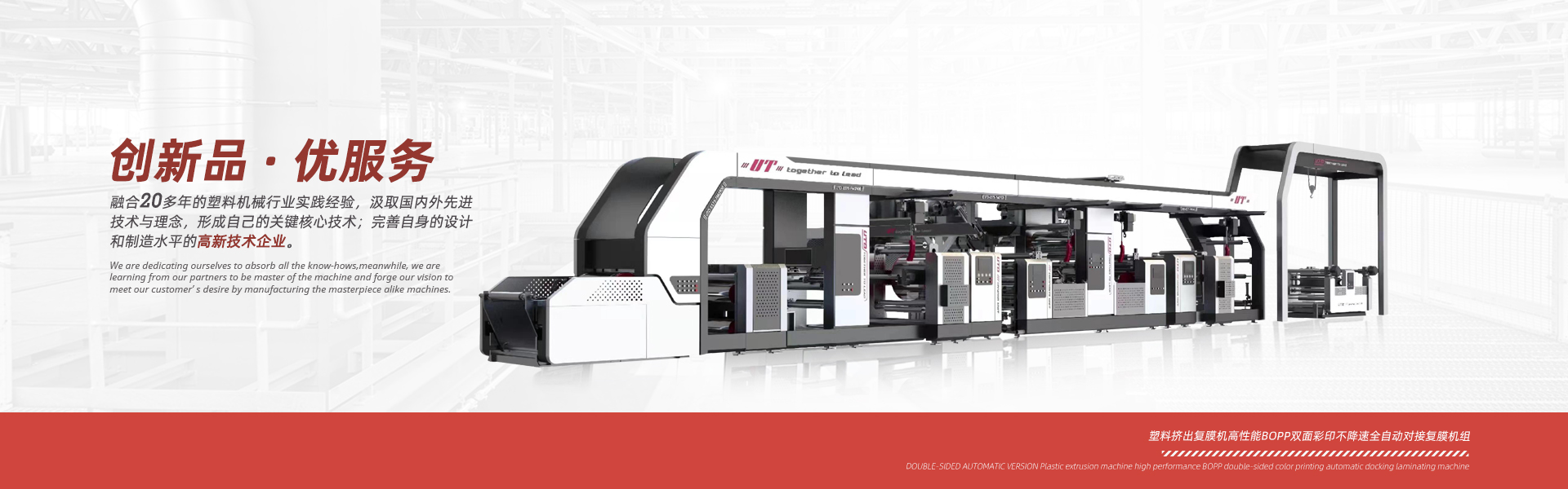 SJ110-FMS2600A雙面塑料擠出復膜機組功能:通過(guò)塑料擠出機對卷材表面進(jìn)行復膜或多種基材復合,以達到提高產(chǎn)品的抗拉強度和防潮性能的效果。 用途:廣泛應用于化工冶金行業(yè)的化工袋、集裝袋,廣告燈箱布、防水材料、建筑材料等產(chǎn)品。 適用基材:PP和HDPE 、LDPE編織布、無(wú)紡布等。 ... -